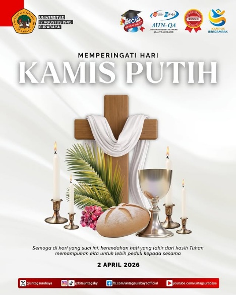 Segenap civitas akademika Untag Surabaya mengucapkan Selamat Idulfitri 1447 H....